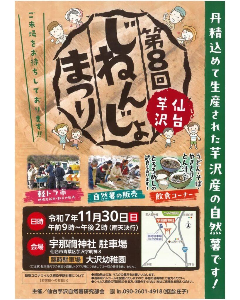 【11/30】第8回じねんじょまつり🥔|芋沢の自然薯を味わう秋の恒例イベント🍂(宮城県仙台市青葉区)