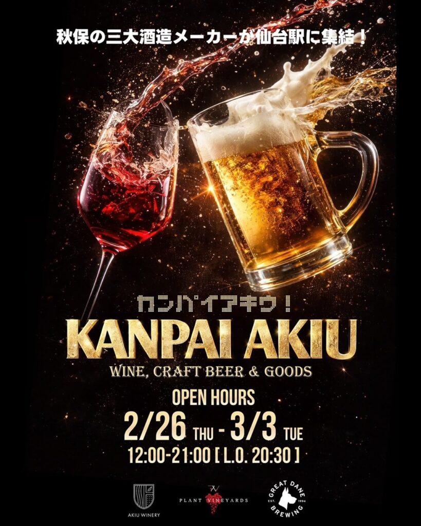 【2/26~3/3】🍷KANPAI AKIU | 秋保3社が集結する特別コラボ(宮城県仙台市)
