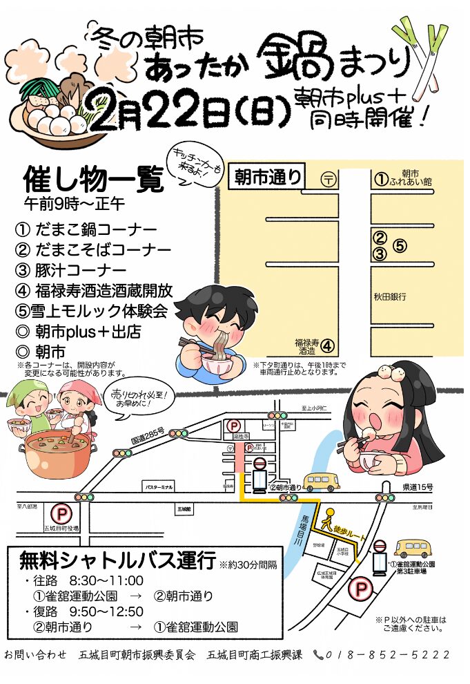 【2/22】🍲冬の朝市「あったか鍋まつり」 | 500年続く五城目朝市で心も体もぽかぽか(秋田県五城目町)