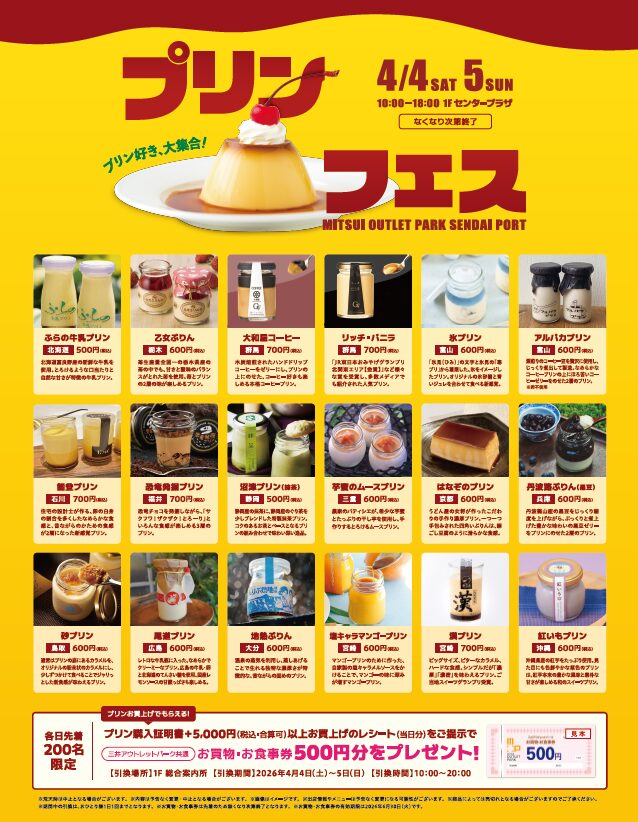 【4/4~5】🍮プリンフェス開催 | 全国の人気プリンが仙台に集結(宮城県仙台市)