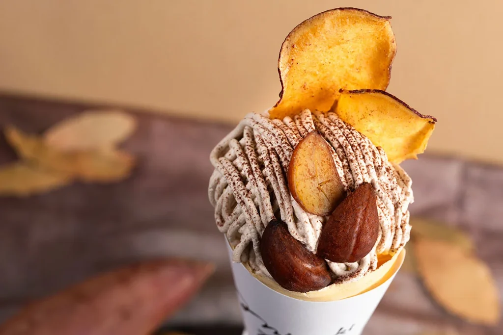 2025年10月1日(水)~10月31日(金)までの期間限定で、「お芋と栗のモンブランクレープ」「栗のミルクティー」を販売します。