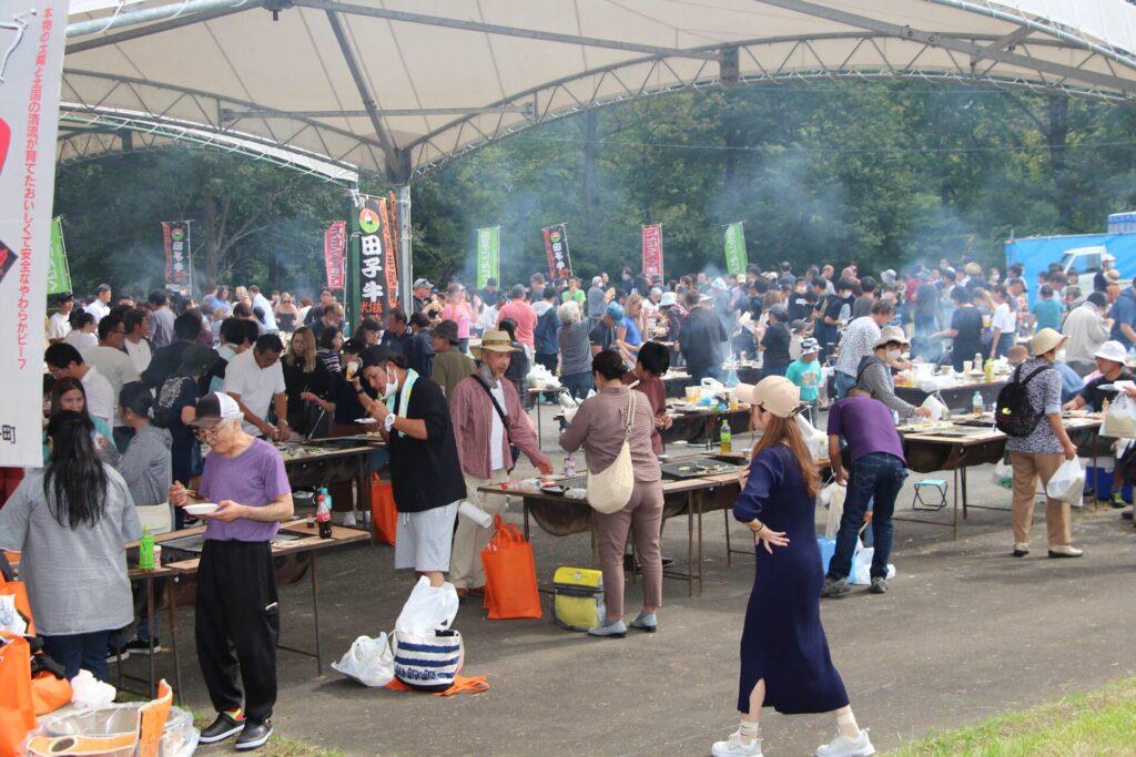 • 恒例のバーベキューコーナーでは、 バーベキューセット引換券(2,500円/4,000円) を利用して、田子牛と野菜、たっこにんにくを豪快に楽しめます。
