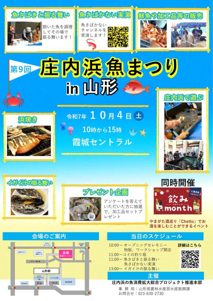 山形市の「霞城セントラル」で、庄内浜の旬を味わえる人気イベント「庄内浜魚まつりin山形」が開催されます!