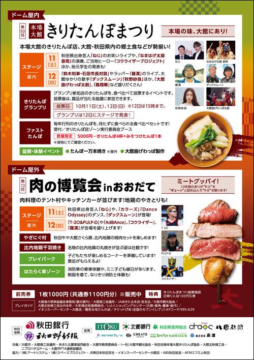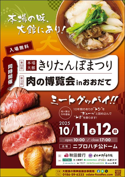 秋田を代表するグルメイベント「本場大館きりたんぽまつり」と「肉の博覧会inおおだて」が、2025年10月11日(土)・12日(日)に ニプロハチ公ドーム(大館樹海ドーム) にて同時開催されます!