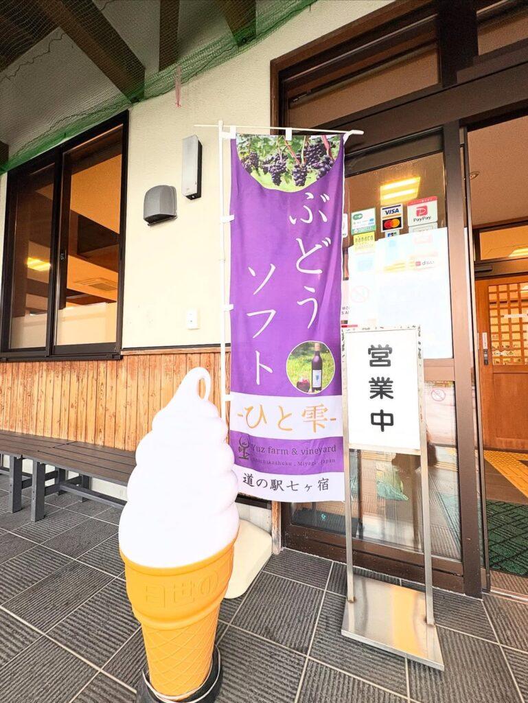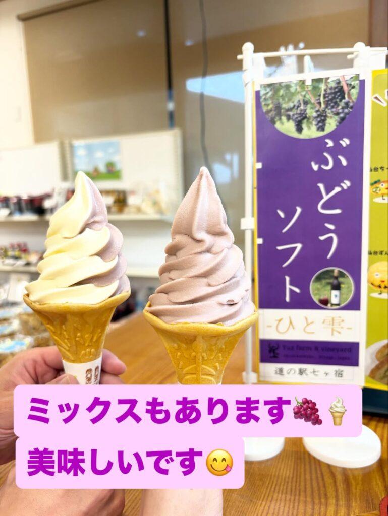 10月1日より、「道の駅 七ヶ宿」にて大人気の 「ひと雫プレミアムぶどうジュース」ソフトクリーム が販売スタートしました🍦✨