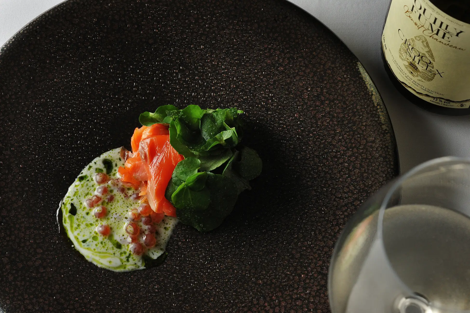 冷前菜「サーモン クレソン」には、ソーヴィニヨン・ブラン「Pouilly Fume Croq Silex」を。