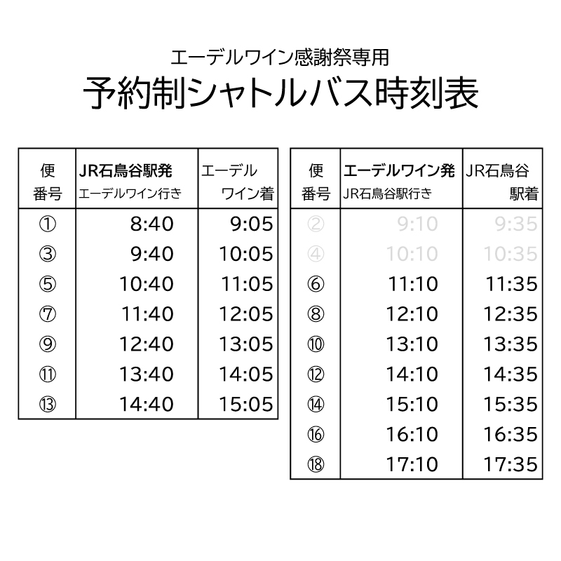 石鳥谷駅 ⇔ ワインシャトー大迫店を結ぶ無料シャトルバスあり(予約制・各便先着25名)。