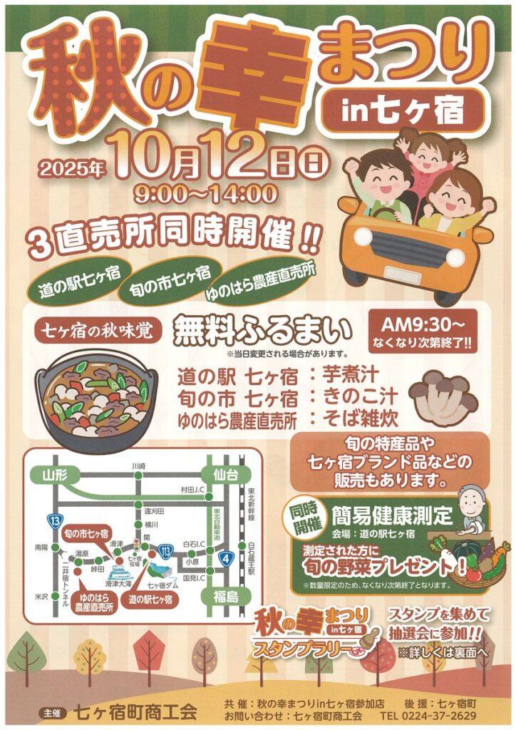 - 会場:道の駅七ヶ宿、旬の市七ヶ宿、ゆのはら農産直売所