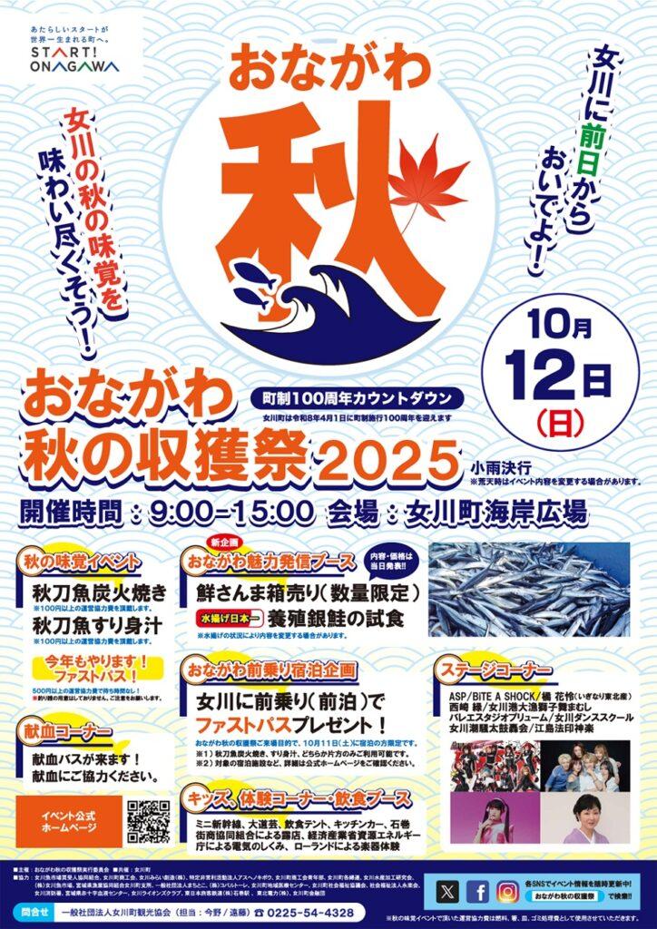 宮城県女川町で毎年恒例の「おながわ秋の収獲祭」が、2025年10月12日(日)に開催されます。