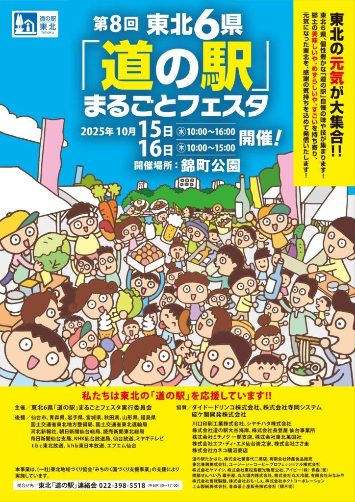 宮城県仙台市の錦町公園で、東北各地の「道の駅」が一堂に集う人気イベント「第8回 東北『道の駅』まるごとフェスタ」2025年10月15日(水)・16日(木)の2日間開催されます!
