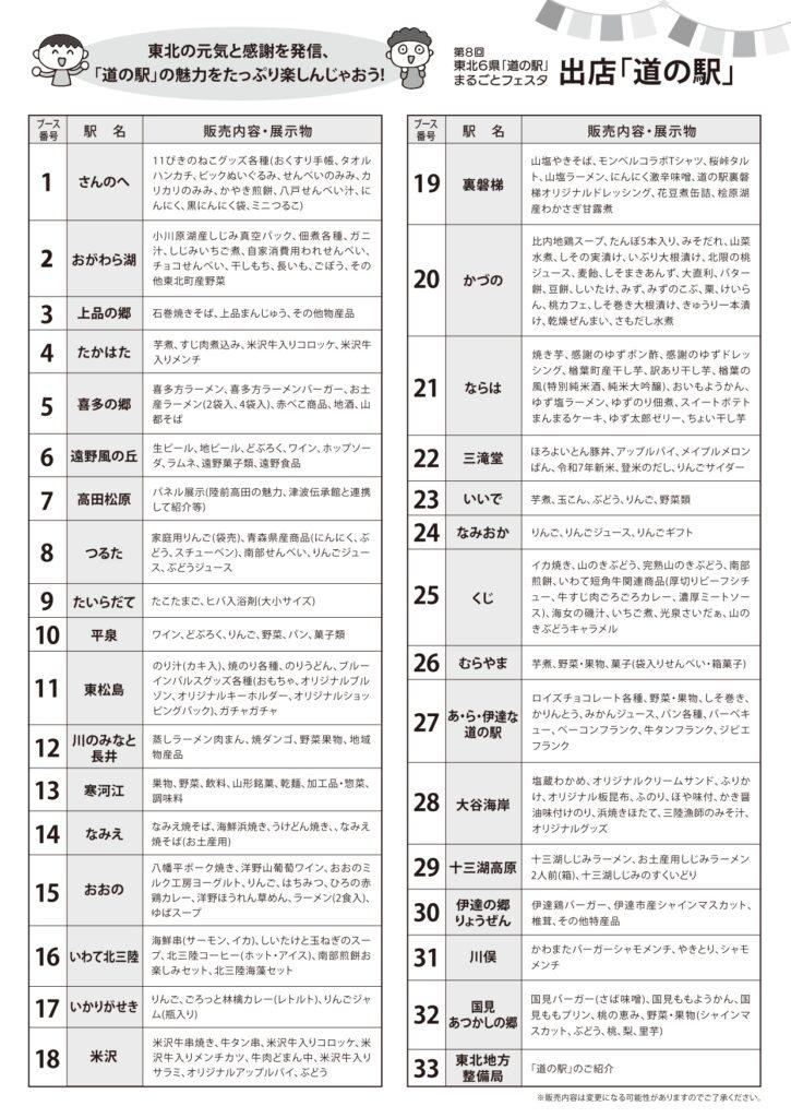 青森から福島まで東北の「道の駅」33駅(予定)が参加し、各地の特産品や旬の味覚を販売。