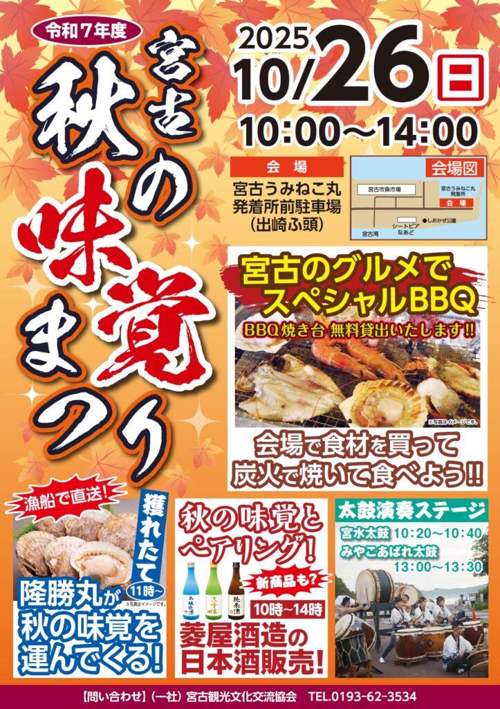 岩手・宮古の秋が香ばしく美味しく染まる「宮古秋の味覚まつり」が、2025年10月26日(日)に出崎ふ頭・宮古うみねこ丸発着所前で開催されます。