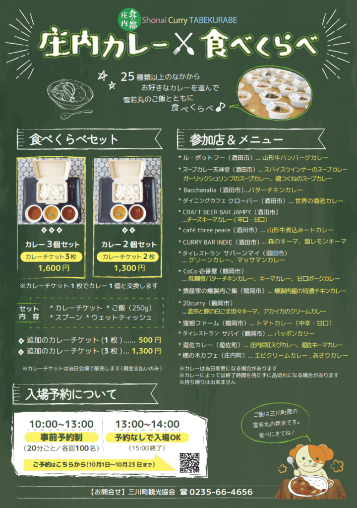 庄内エリアから17店以上が参加し、山形牛カレー、スープカレー、キーマ、エビカレー、タイ風カレーなどバリエーション豊富な味が並びます。
