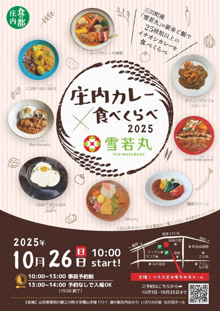 山形県三川町で大人気のグルメイベント「庄内カレー食べくらべ」が、2025年10月26日(日)に いろり火の里 なの花ホール で開催されます。県内各地から人気店が集結し、米どころ三川町産「雪若丸」新米のご飯とともに、自慢のカレーを楽しめる秋の食祭りです。