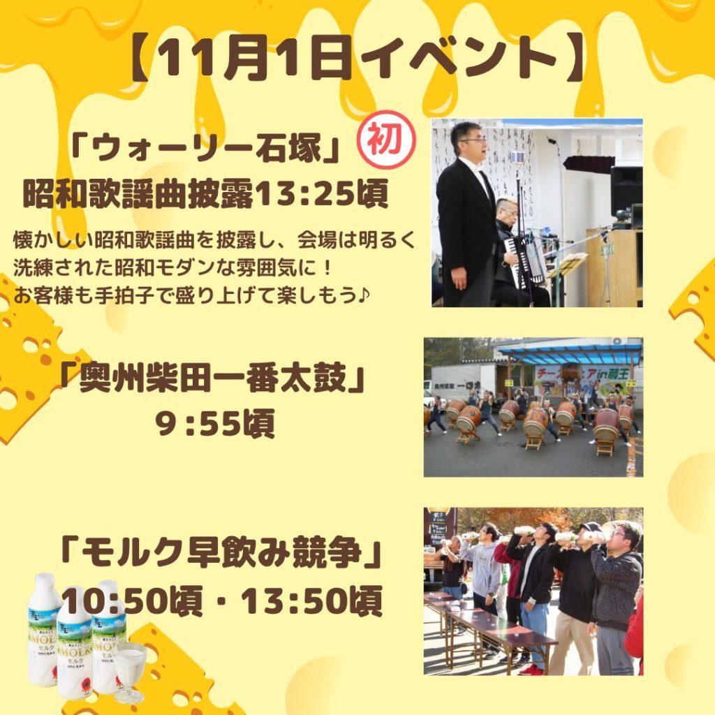 毎年多くの来場者で賑わう秋の恒例イベント。今年も蔵王酪農センターを会場に、チーズグルメ・特産野菜・体験イベントなど、魅力満載の2日間です!
