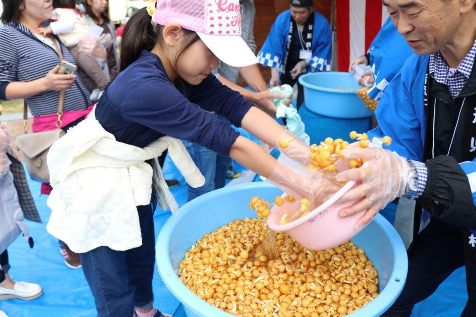 同時開催の「鮭川きのこ王国まつり」では、なめこのつかみどりやしいたけ植菌体験を開催。
