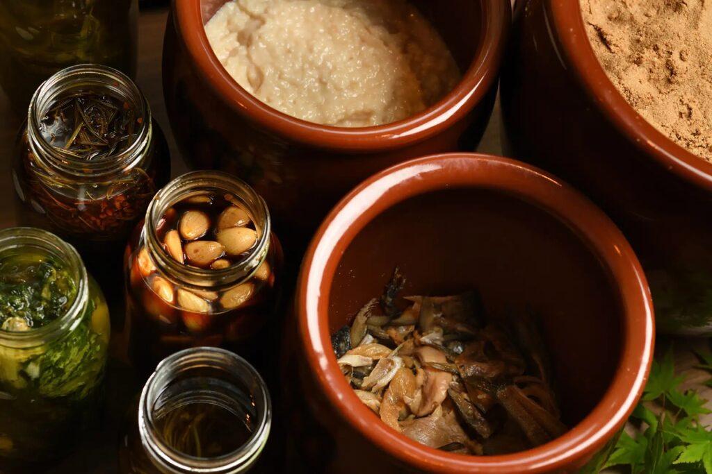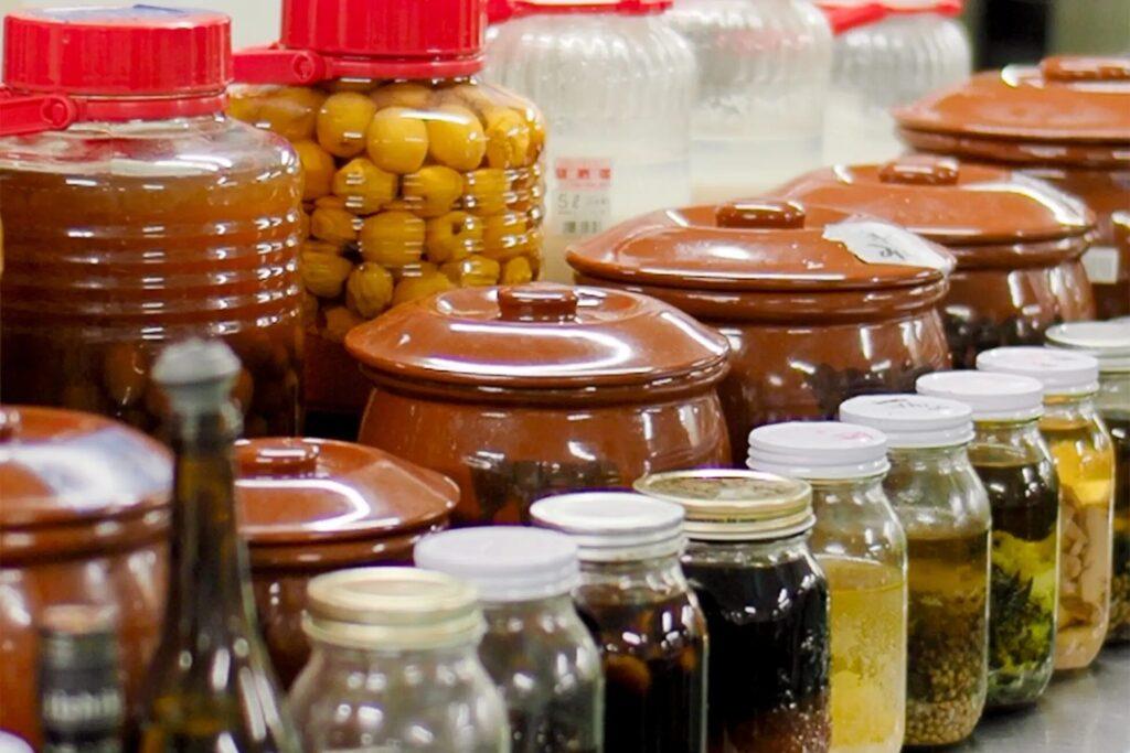 吉川屋の厨房で仕込まれる発酵食品・調味料の数々