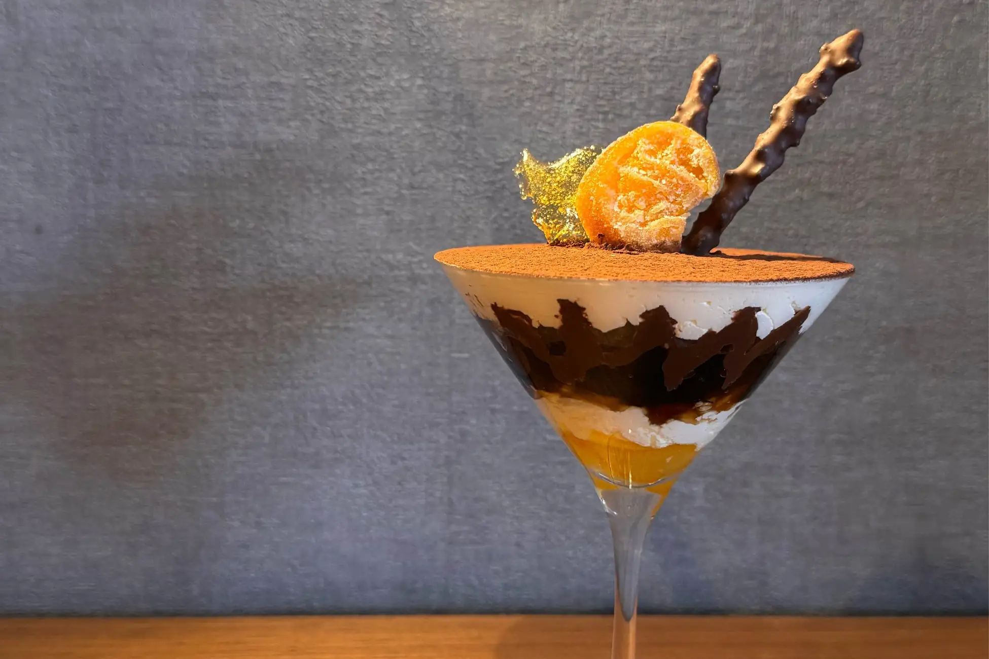 2026年2月13日~15日の3日間限定で、夕食後のBARタイムに「オレンジ香るティラミスパフェ」を提供。温泉旅の締めくくりにぴったりの、大人向けスイーツです。
