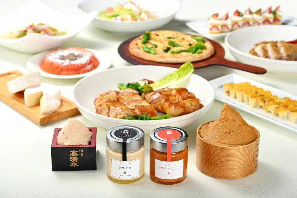 味噌、麹、酒粕、発酵調味料など、自然の力を活かしたメニュー約50品が並びます。