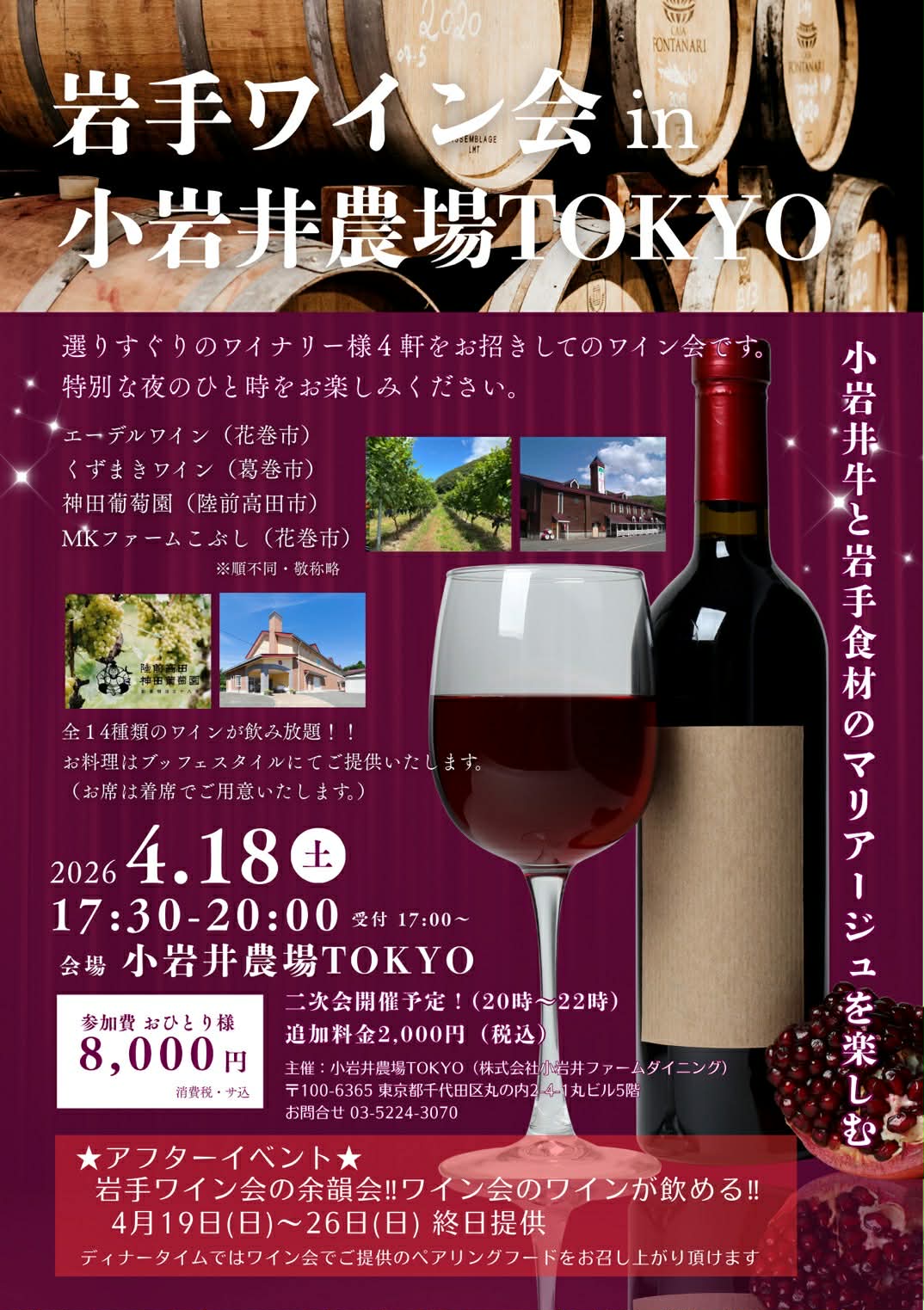 | イベント名 | いわてワイン会 in 小岩井農場TOKYO |
