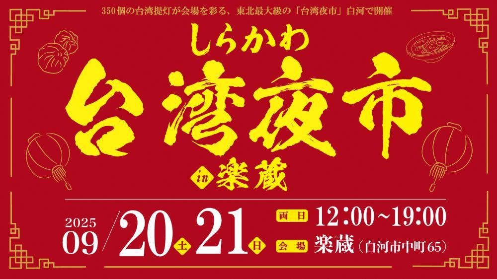 台湾グルメと幻想的な夜市の雰囲気を楽しめる「しらかわ台湾夜市in楽蔵2025」が、9月20日(土)・21日(日)の2日間にわたり白河市「楽蔵」で開催されます。多くの提灯... -