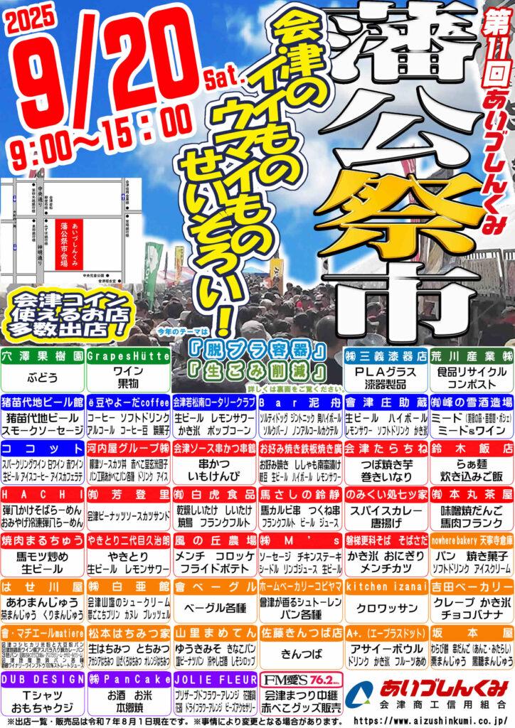 【9/20】🍶今年も開催!あいづしんくみ藩公祭市2025(福島県会津若松市)