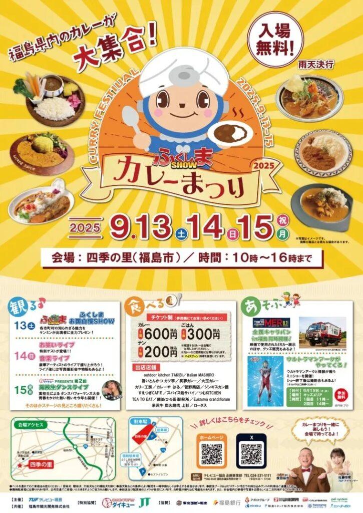 🍛3連休は“カレー天国”へ。家族で、推しと、胃袋で福島を応援! 福島市・四季の里で「ふくしまSHOW カレーまつり」開催!TUF『ふくしまSHOW』で紹介された人気店... -