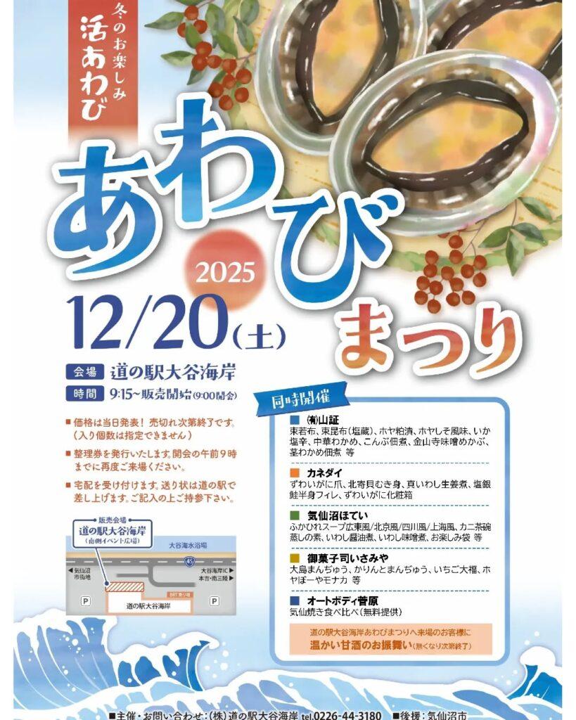 🎣【12/20開催】道の駅大谷海岸 あわびまつり2025|生あわび格安販売&甘酒ふるまい!(宮城県気仙沼市)
