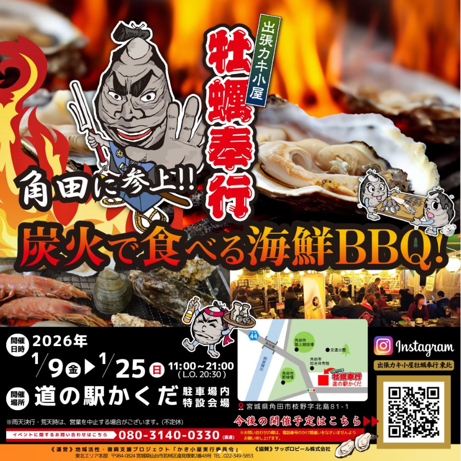 🦪🔥【1/9〜25】牡蠣奉行in角田|道の駅かくだで出張牡蠣小屋開催(宮城県角田市)