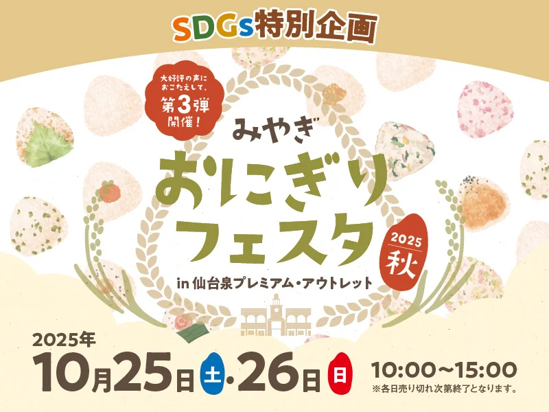 「みやぎ おにぎりフェスタ2025秋」が、10月25日(土)・26日(日)の2日間、仙台泉プレミアム・アウトレットで開催されます! 延べ26店舗の人気おにぎり店が大集合。「... -