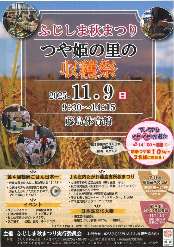 【11/9】🌾ふじしま秋まつり「つや姫の里の収穫祭」開催!🍙— 鶴岡の秋を味わう、食と農の大祭 —(山形県鶴岡市)
