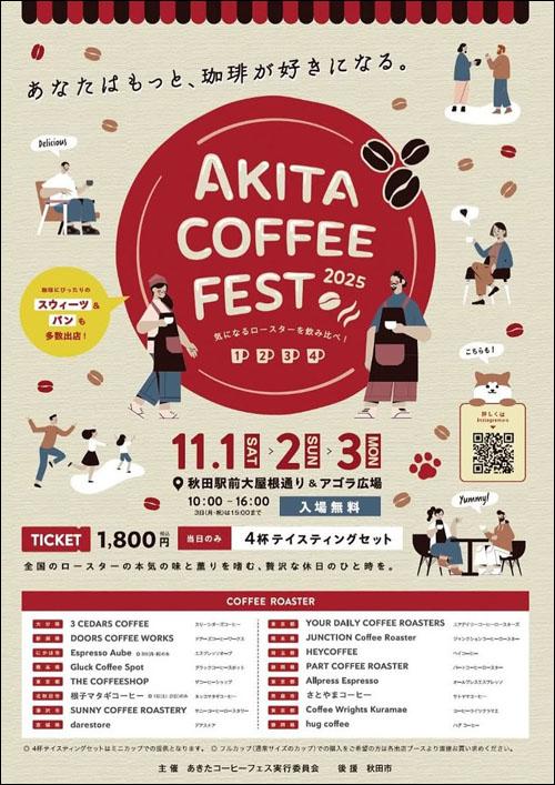 秋田市の中心・秋田駅前大屋根通りとアゴラ広場で「あきたコーヒーフェス2025」が開催されます!期間は2025年11月1日(土)〜3日(月・祝)までの3日間。秋田県内外から... -