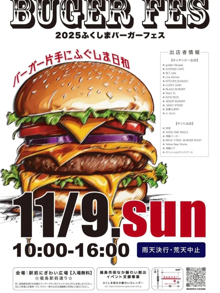 【11/9】🍔2025 ふくしまバーガーフェス|まちなかで味わう“ふぐしま日和”!(福島県福島市)